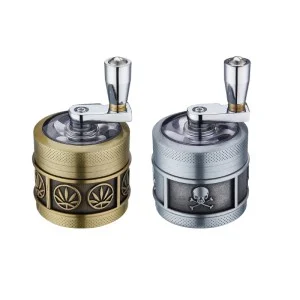 Grinder de 3 peças atraente com um acabamento apelativo com desenho de uma folha ou de uma caveira da Champ High com um diâmetro de 40 mm. Resultados muito bons graças aos seus dentes afiados em forma de diamante.