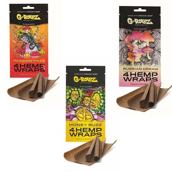 Estes Wraps G-Rollz são feitos de cânhamo espanhol orgânico de primeira qualidade, que oferece uma excecional resistência ao rasgo e retenção de humidade. Isto faz com que o enchimento dos invólucros seja uma experiência perfeita, eliminando problemas de rasgões ou fissuras.