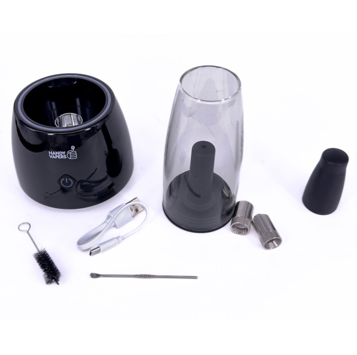 O Etna da Handy Vapers é um vaporizador avançado, projetado para oferecer uma experiência de vaporização sem mãos através de um bubbler de vidro. Este dispositivo 3 em 1 é compatível com cartuchos de cera, ervas secas e óleo, destacando-se pela facilidade de uso e versatilidade. O ETNA foi criado para elevar suas sessões de vaporização ao mais alto nível, proporcionando uma experiência confortável e sofisticada.