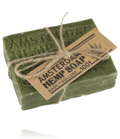 Sabonete artesanal de cânhamo, feito na Holanda. Ingredientes: sódio palmado, palma de sódio kernelate, aqua, parfum, glicerina, folhas de urtica dioica folia, cloreto de sódio, cumarina, tetra de sódio EDTA, etidronato de sódio tetra.